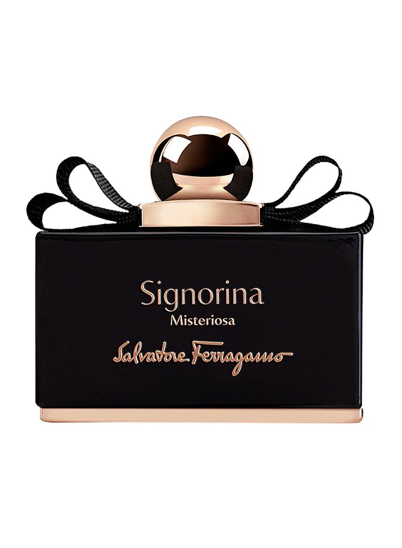 - The beautiful Signorina Misteriosa EDP by Salvatore Ferragamo is a must have in your collection. The perfume is a mix of peony, patchouli and other flowery and fruity ingredients.